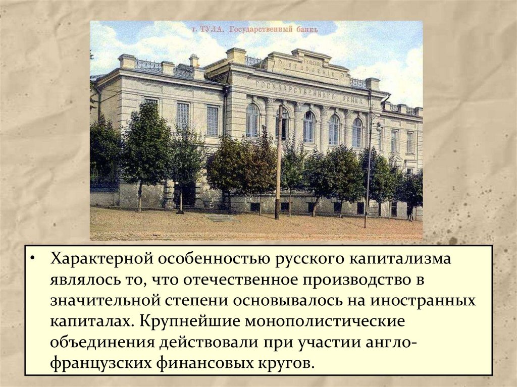 • Характерной особенностью русского капитализмаявлялось то, что отечественное производство в