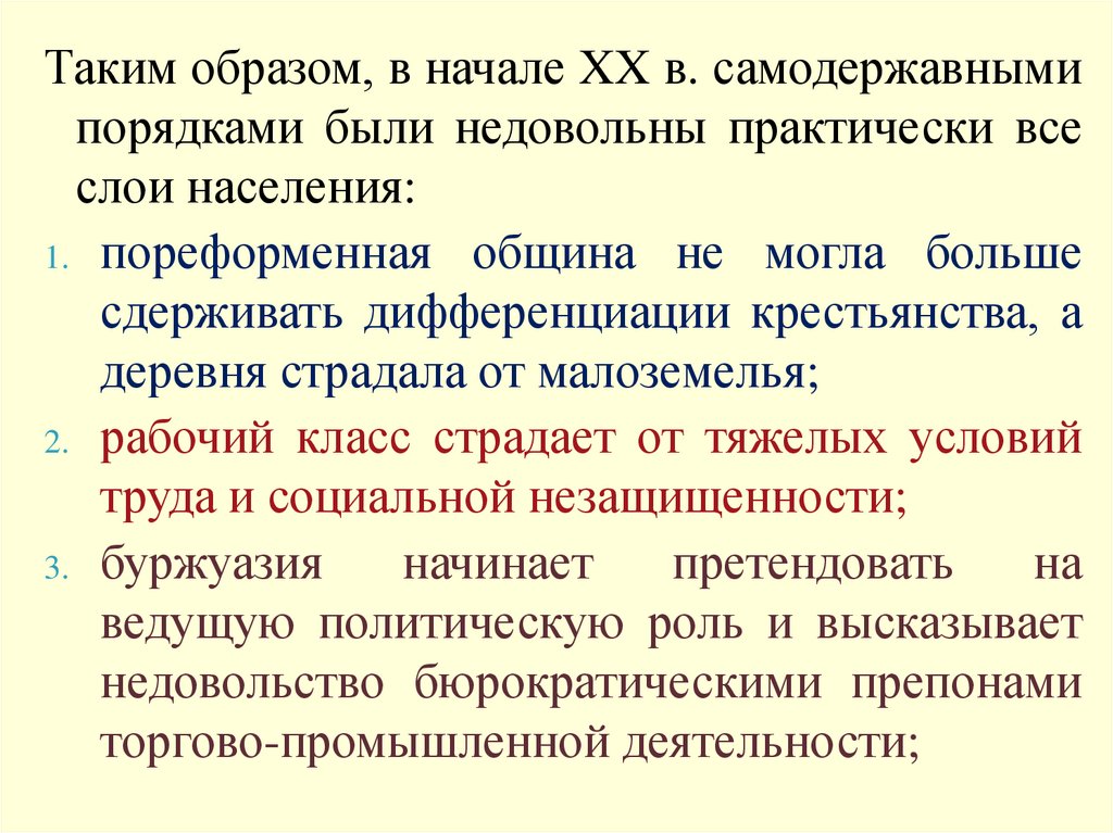 Таким образом, в начале XX в. самодержавнымипорядками были недовольны практически все