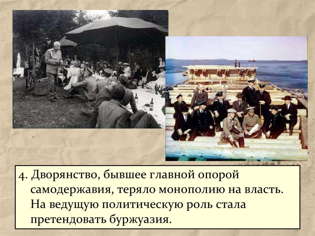 4. Дворянство, бывшее главной опоройсамодержавия, теряло монополию на власть.
