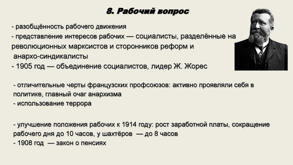 8. Рабочий вопрос- разобщѐнность рабочего движения