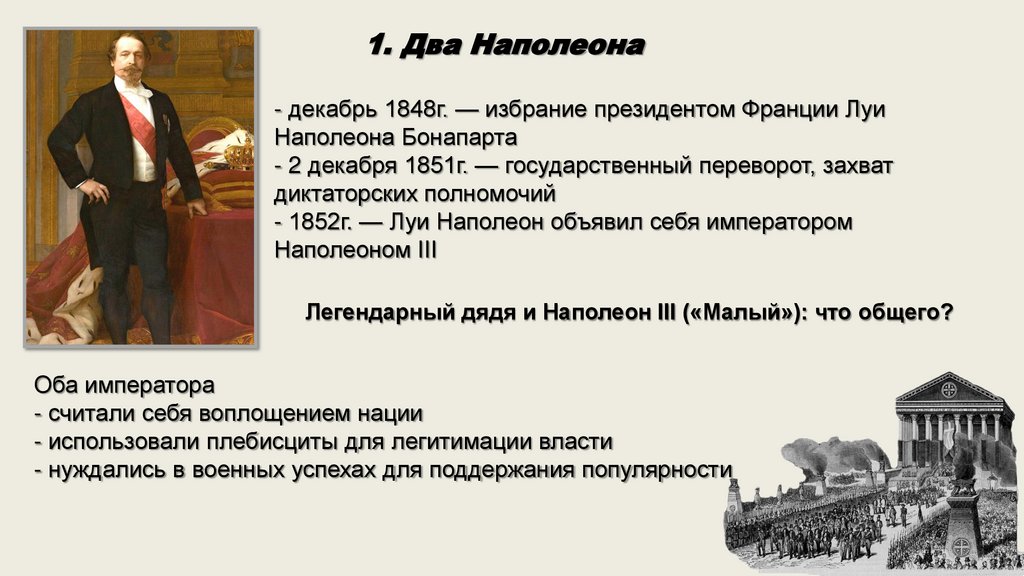 1. Два Наполеона- декабрь 1848г. — избрание президентом Франции Луи