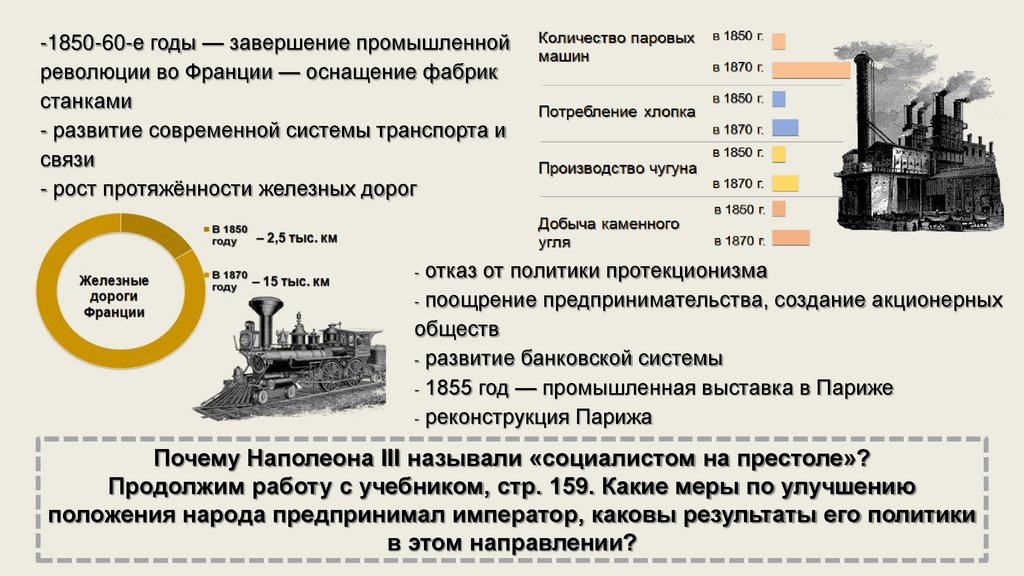 -1850-60-е годы — завершение промышленнойреволюции во Франции — оснащение фабрик