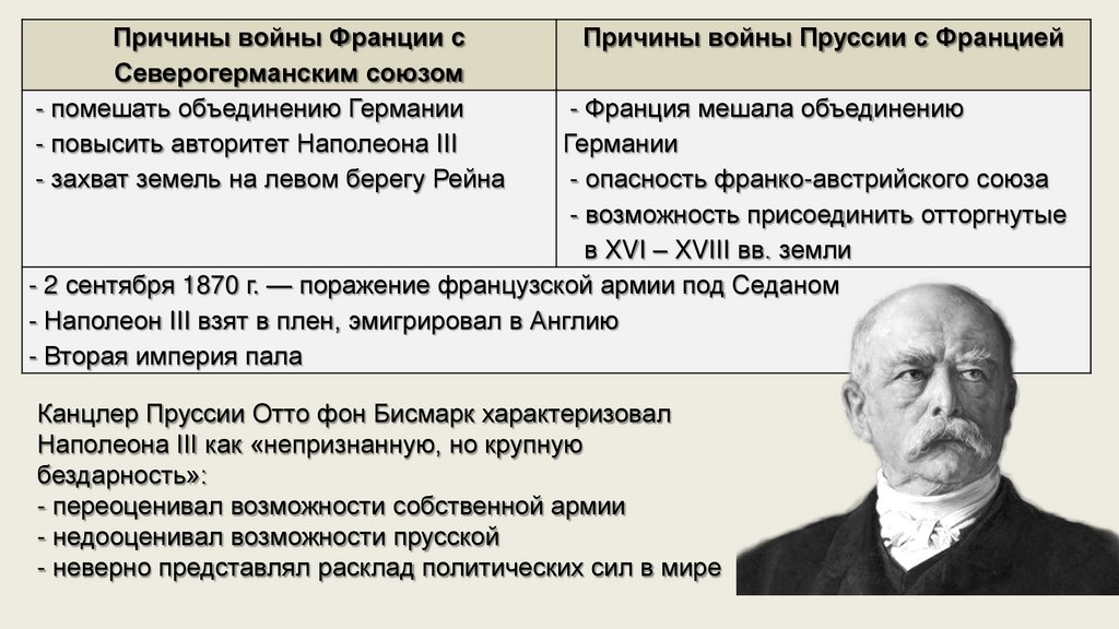 Причины войны Франции сСеверогерманским союзом
