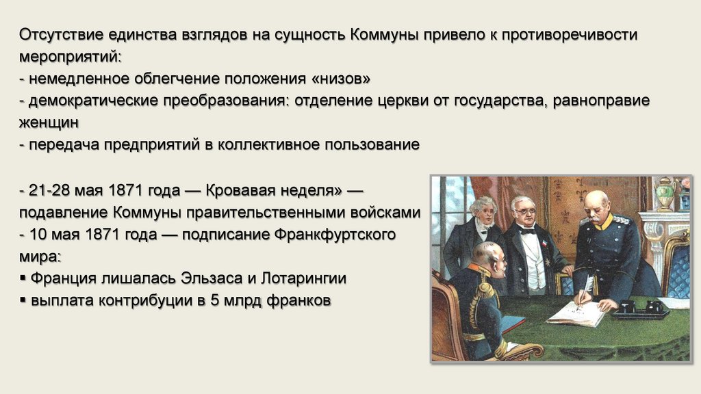 - 10 мая 1871 года — подписание Франкфуртского