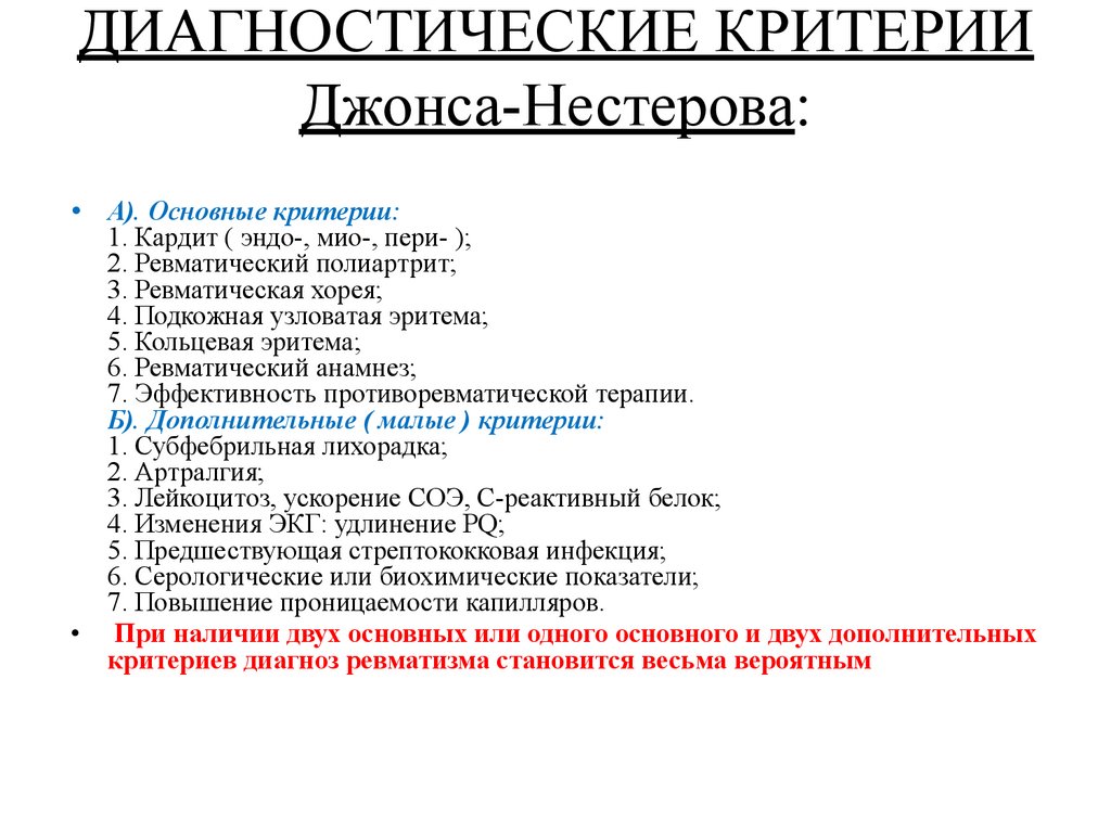 ДИАГНОСТИЧЕСКИЕ КРИТЕРИИДжонса-Нестерова: