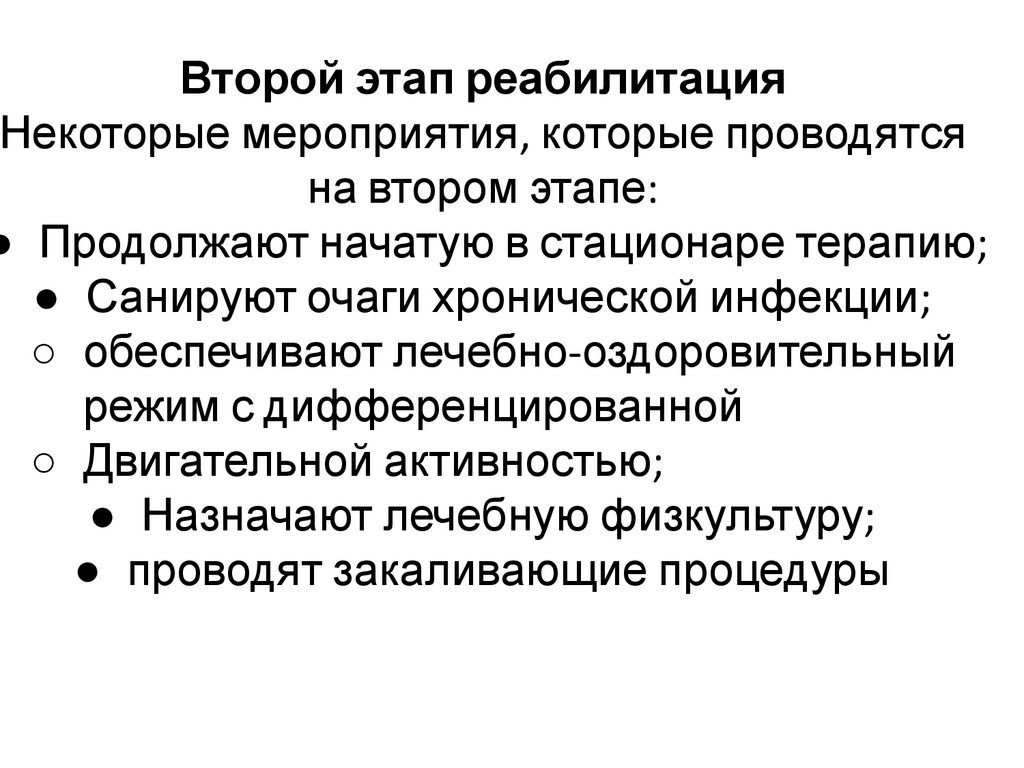 Второй этап реабилитацияНекоторые мероприятия, которые проводятся