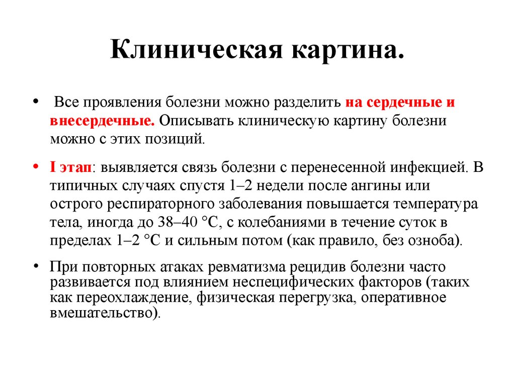 Клиническая картина.• Все проявления болезни можно разделить на сердечные и