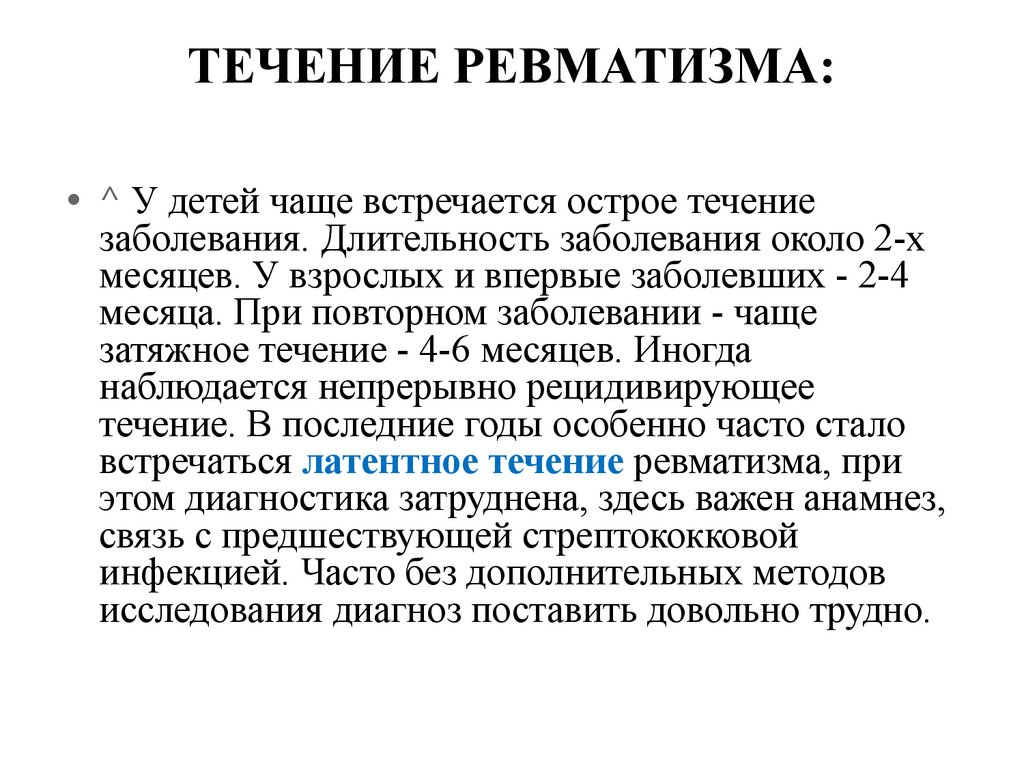 ТЕЧЕНИЕ РЕВМАТИЗМА:• ^ У детей чаще встречается острое течение