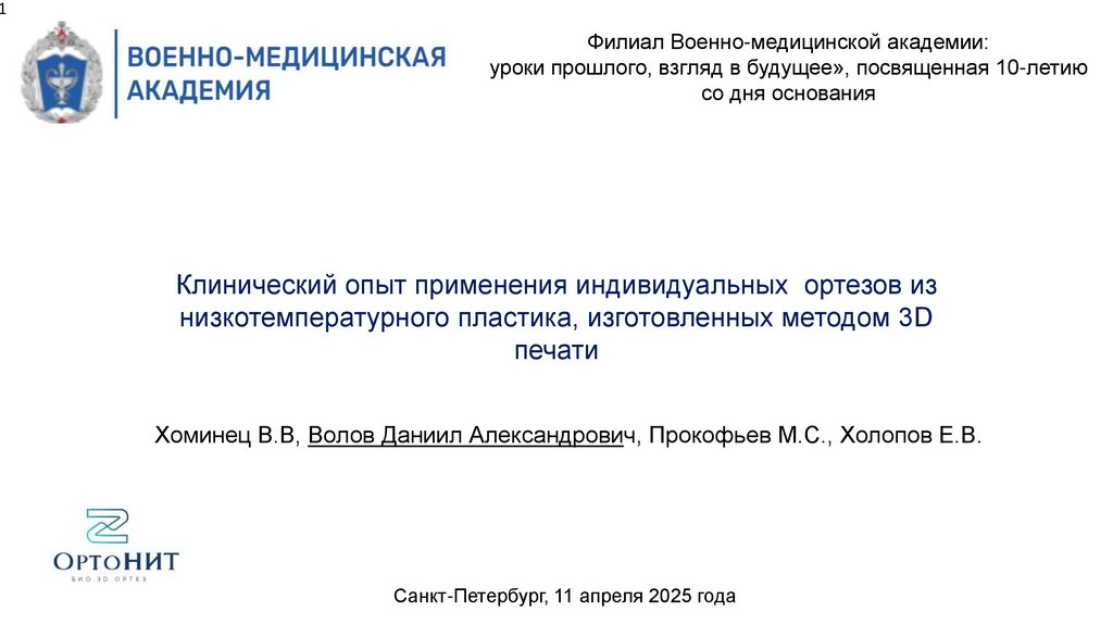 1. Клинический опыт применения индивидуальных ортезов из низкотемпературного пластика, изготовленных методом 3D печати