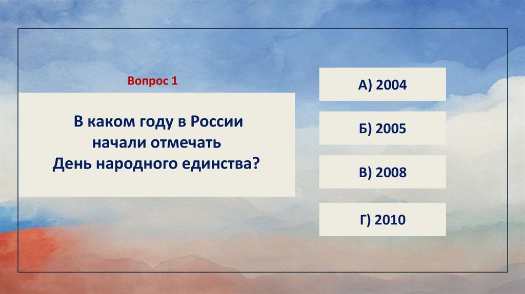 Вопрос 1В каком году в России