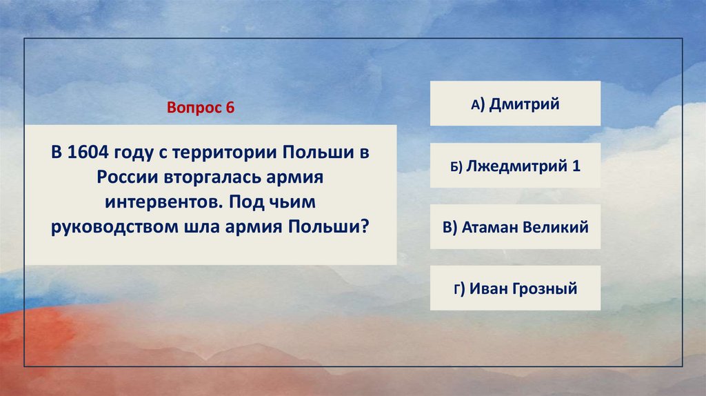 Вопрос 6В 1604 году с территории Польши в