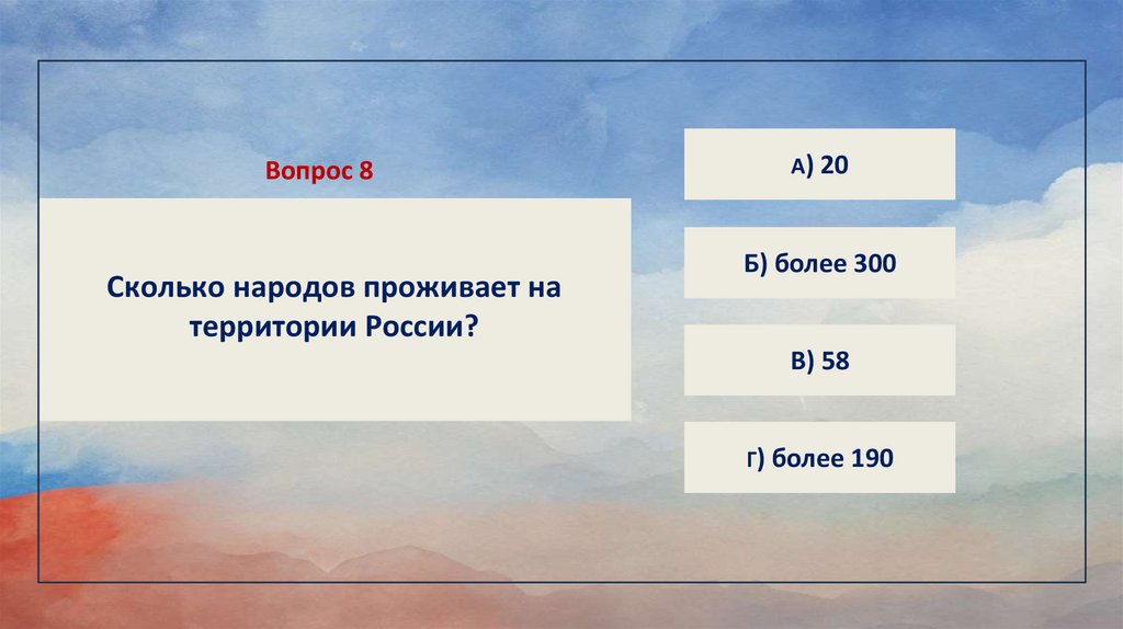 Вопрос 8Сколько народов проживает на