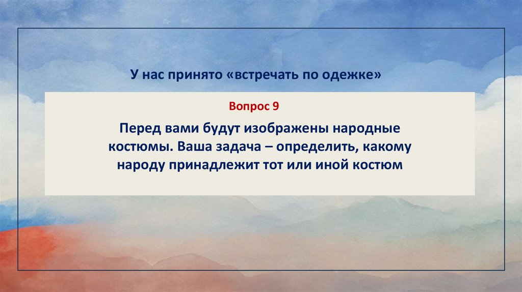 У нас принято «встречать по одежке»Вопрос 9