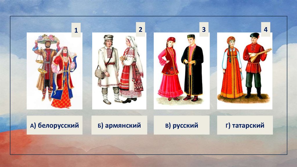 Перед вами будут изображены народные