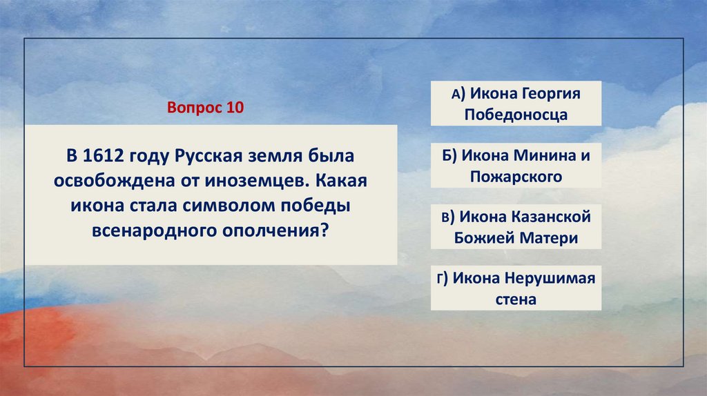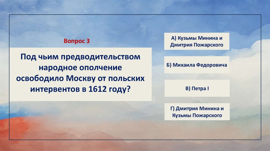 Вопрос 10В 1612 году Русская земля была