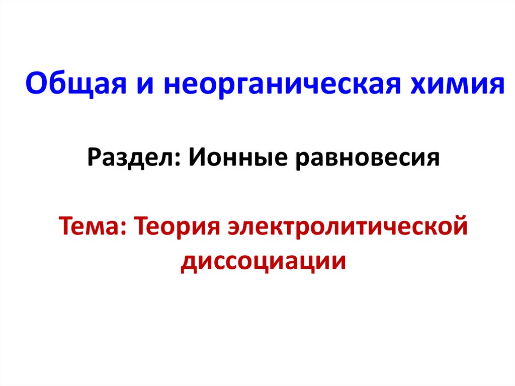 Общая и неорганическая химияРаздел: Ионные равновесия