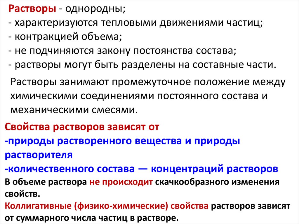 Растворы - однородны;- характеризуются тепловыми движениями частиц;