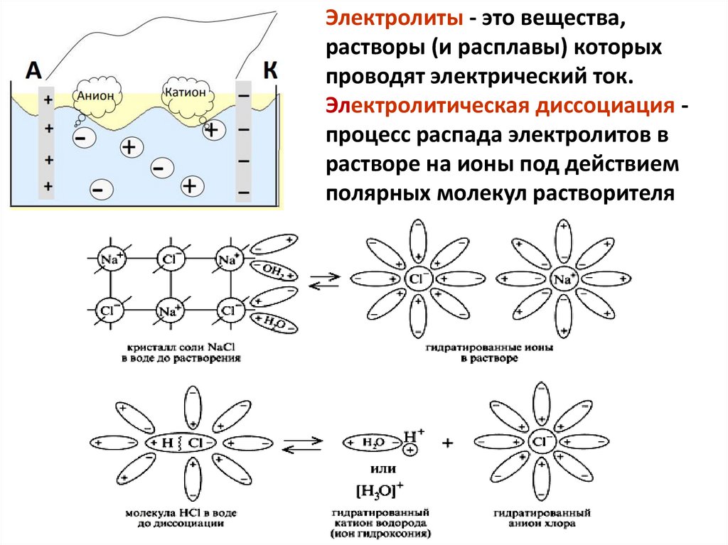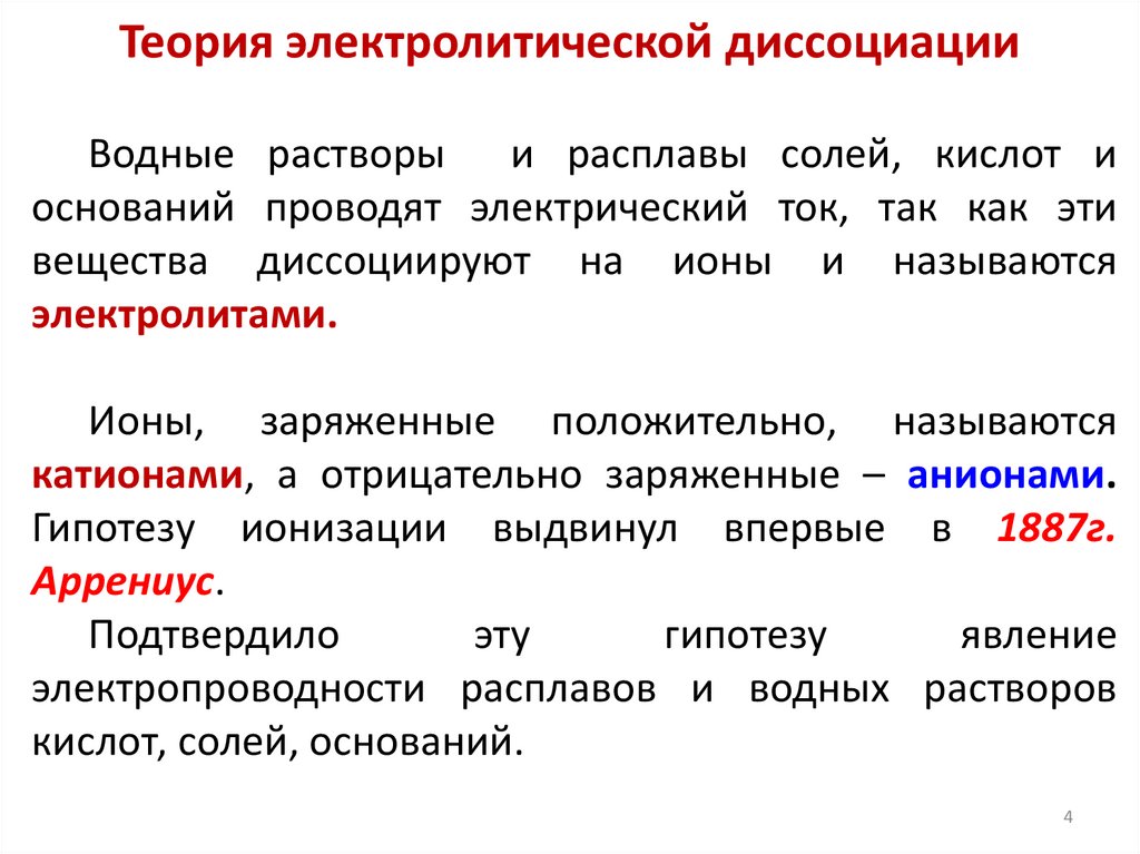 Теория электролитической диссоциацииВодные растворы и расплавы солей, кислот и