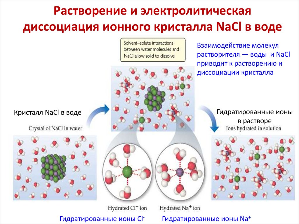 Растворение и электролитическаядиссоциация ионного кристалла NaCl в воде