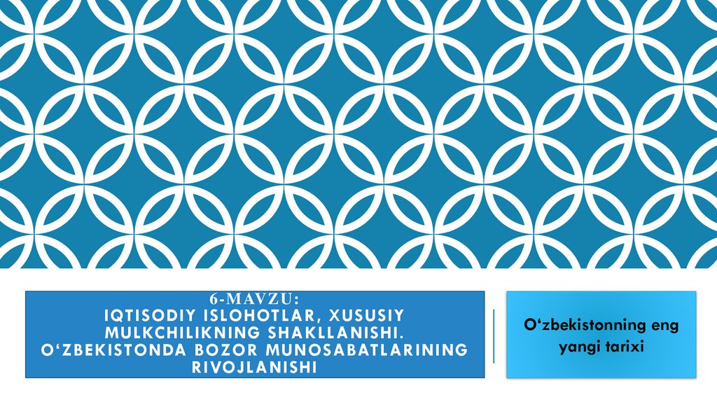 1. 6-mavzu: Iqtisodiy islohotlar, xususiy mulkchilikning shakllanishi. O‘zbekistonda bozor munosabatlarining rivojlanishi