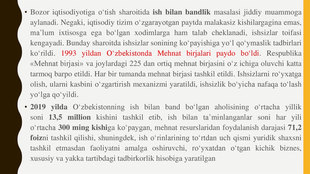 zaruriyati bilan bog’liq edi. Ijtimoiy yо‘naltirilgan bozor iqtisodiyoti О‘zbekiston