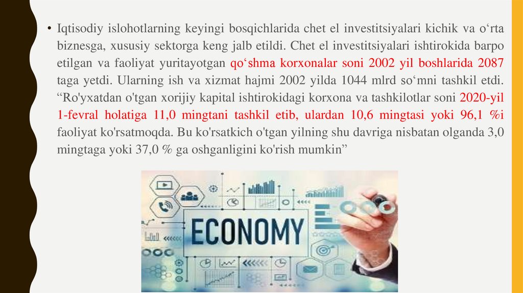 tobora kо‘payib bormoqda. Shunday qilib, iqtisodiyot tarkibidagi tub о‘zgarishlar, yangi