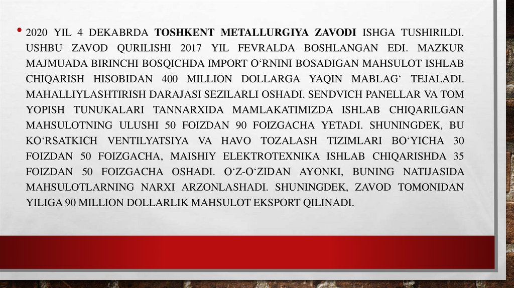 Prezidentning 2016-yildagi farmoniga ko‘ra «Navoiy» erkin industrial-iqtisodiy zonasi,