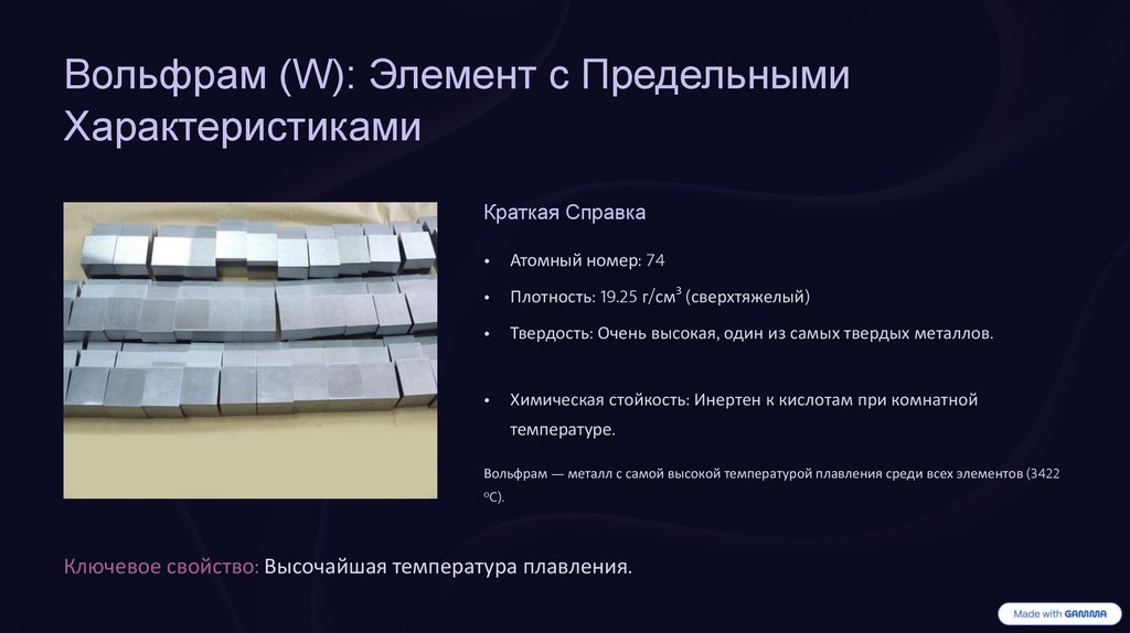 Вольфрам — металл с самой высокой температурой плавления среди всех элементов (3422