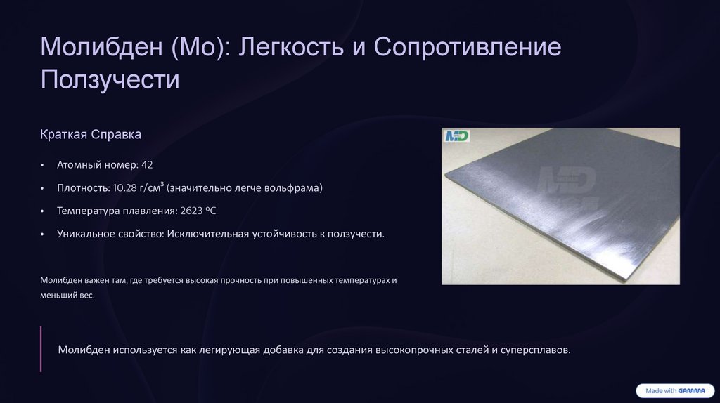 Молибден (Mo): Легкость и СопротивлениеПолзучести