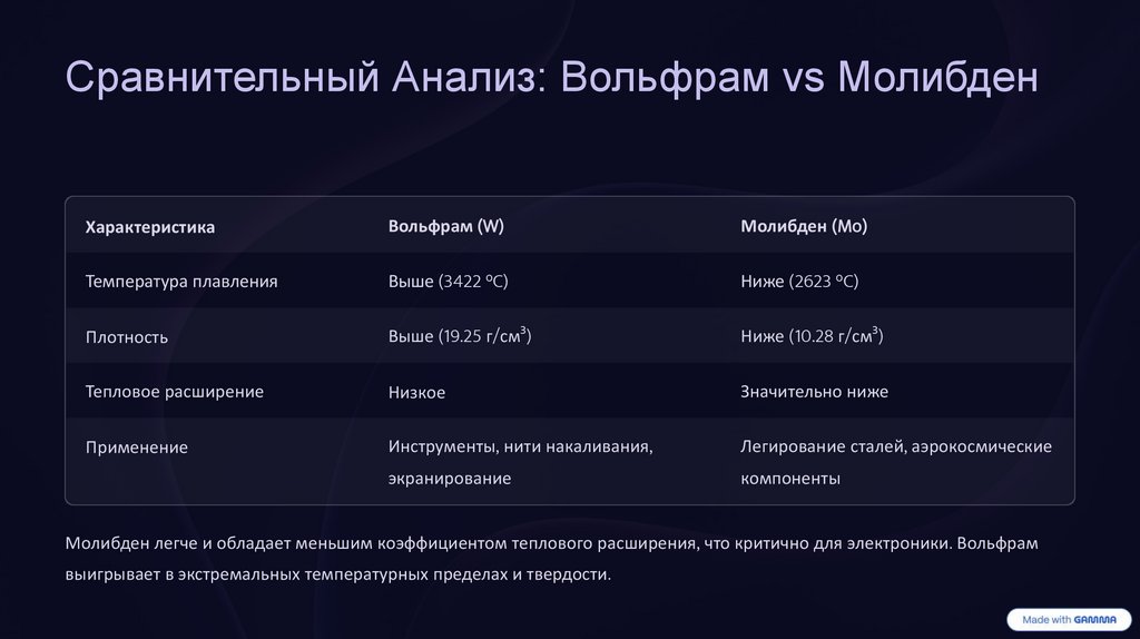 Сравнительный Анализ: Вольфрам vs МолибденХарактеристика