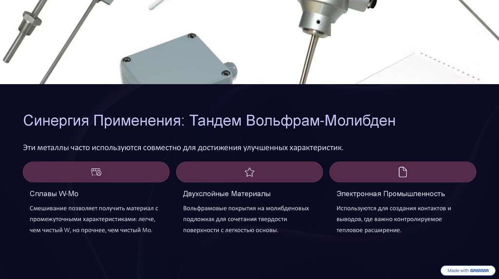 Синергия Применения: Тандем Вольфрам-МолибденЭти металлы часто используются совместно для достижения улучшенных характеристик.