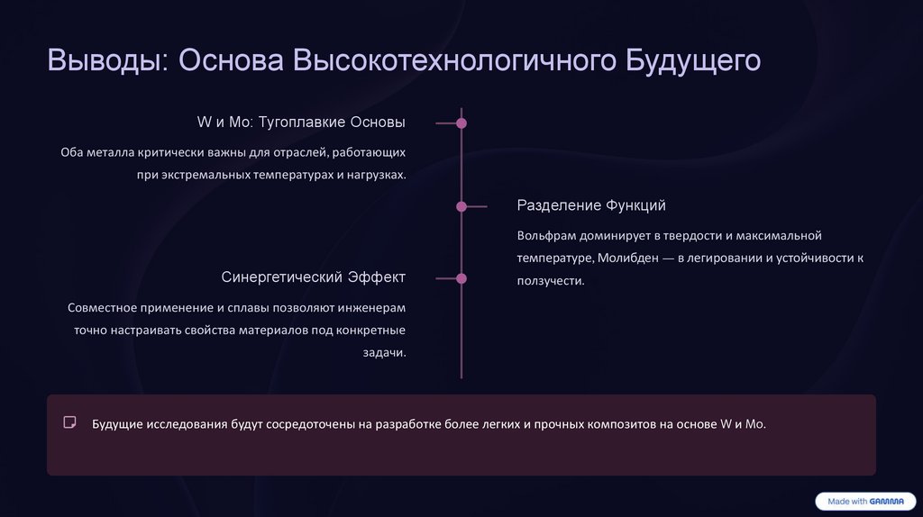 Выводы: Основа Высокотехнологичного БудущегоW и Mo: Тугоплавкие Основы