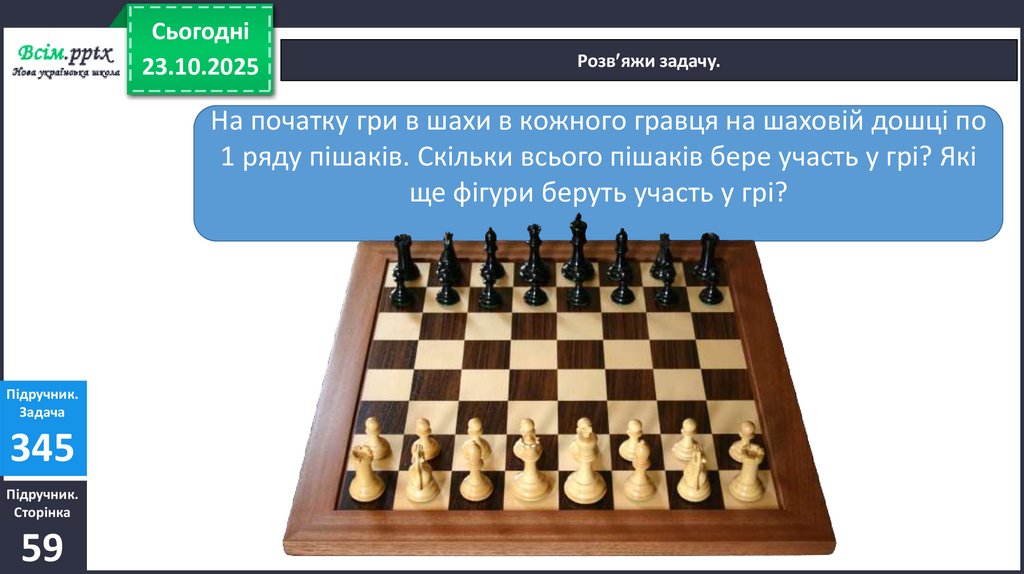 1 ряду пішаків. Скільки всього пішаків бере участь у грі? Які