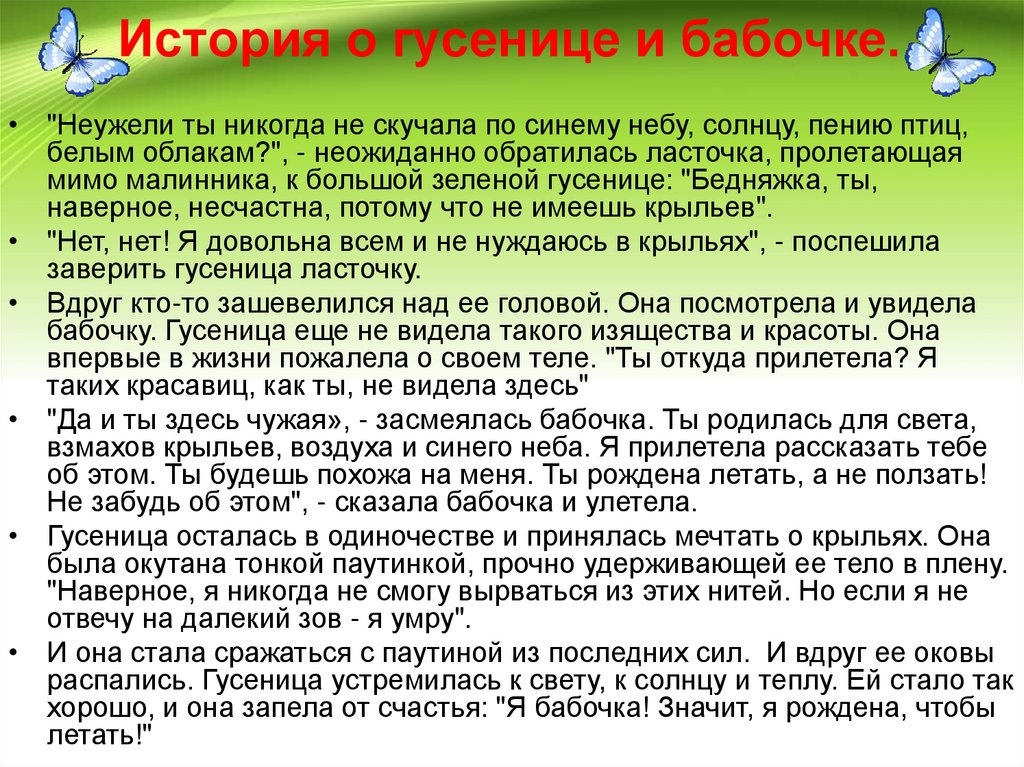 Сказка о том, как гусеница сталабабочкой.