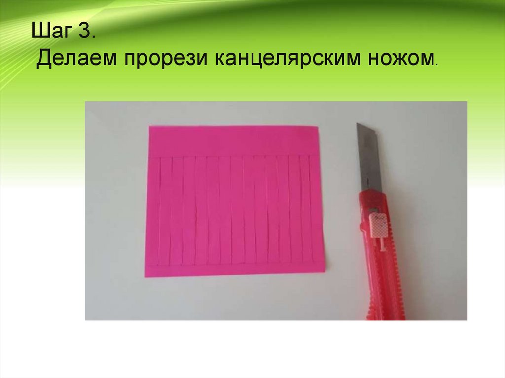 Шаг 3.Делаем прорези канцелярским ножом.