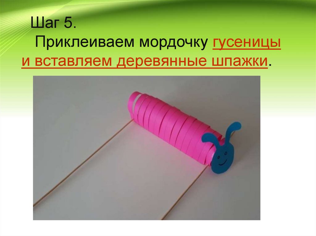 Шаг 5.Приклеиваем мордочку гусеницы
