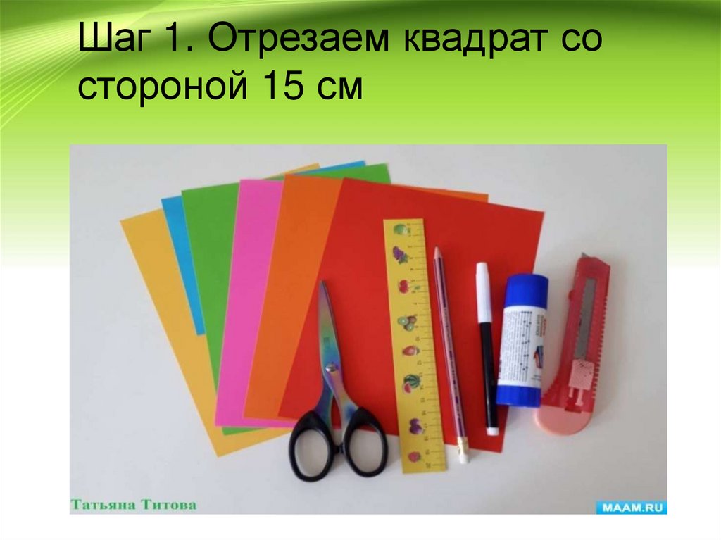 Шаг 1. Отрезаем квадрат состороной 15 см