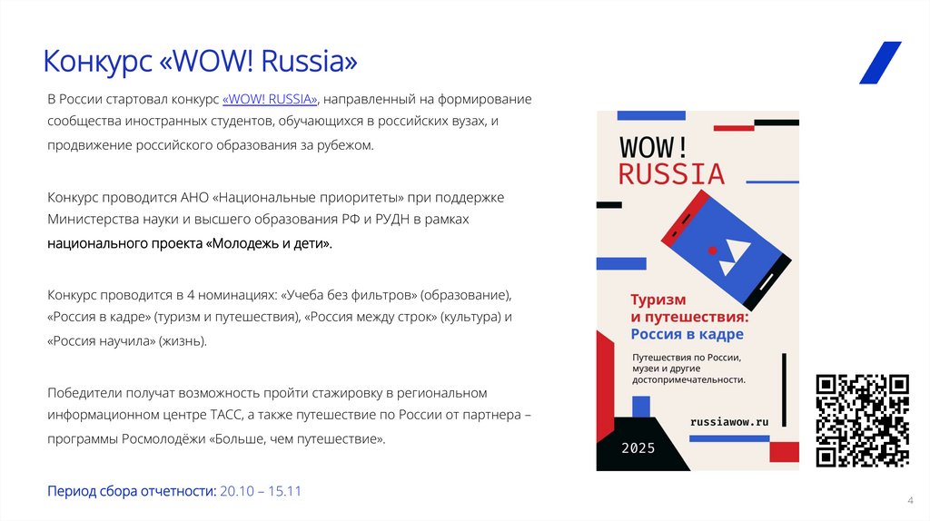 В России стартовал конкурс «WOW! RUSSIA», направленный на формированиесообщества иностранных студентов, обучающихся в российских вузах, и
