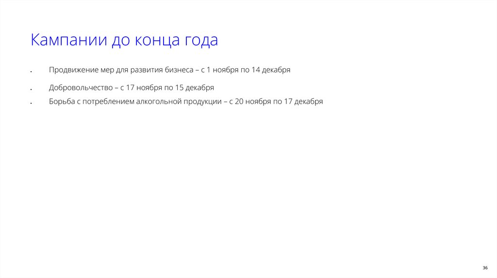 Кампании до конца годаПродвижение мер для развития бизнеса – с 1 ноября по 14 декабря