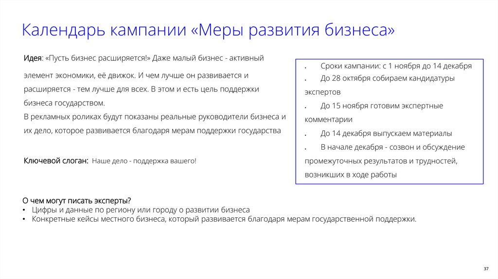 Календарь кампании «Меры развития бизнеса»: «Пусть бизнес расширяется!» Даже малый бизнес - активный