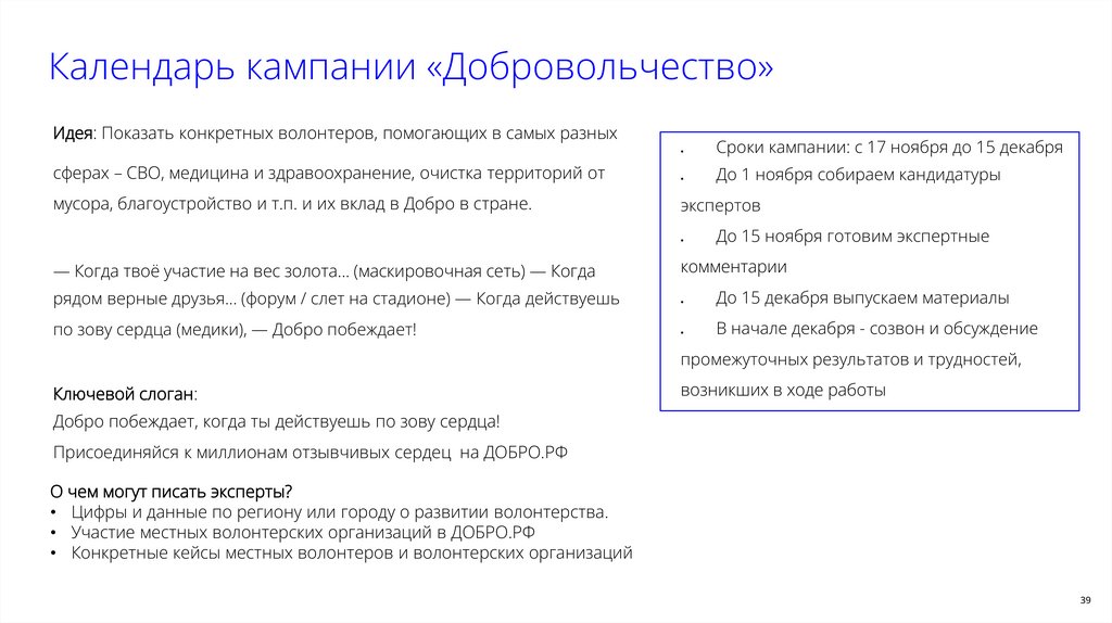 Календарь кампании «Добровольчество»: Показать конкретных волонтеров, помогающих в самых разных