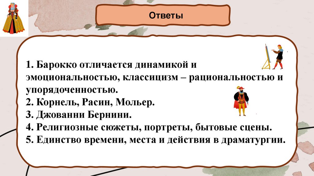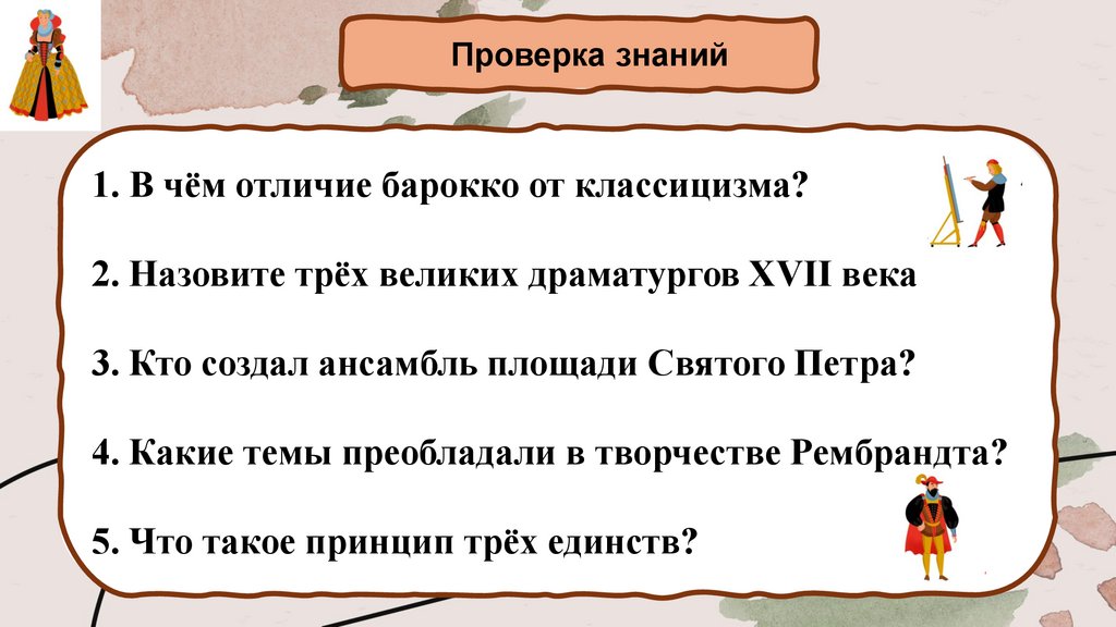 Проверка знаний1. В чём отличие барокко от классицизма?