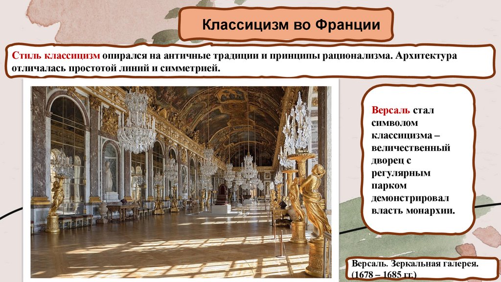 Классицизм во ФранцииСтиль классицизм опирался на античные традиции и принципы рационализма. Архитектура