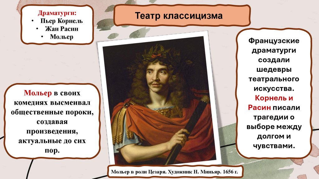Мольер в роли Цезаря. Художник Н. Миньяр. 1656 г.