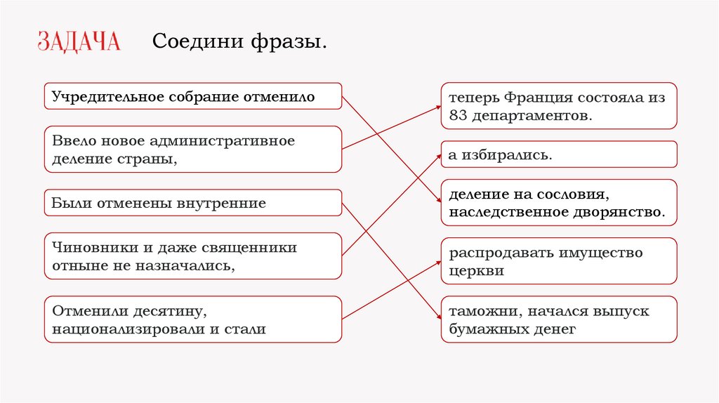 Соедини фразы.Учредительное собрание отменило