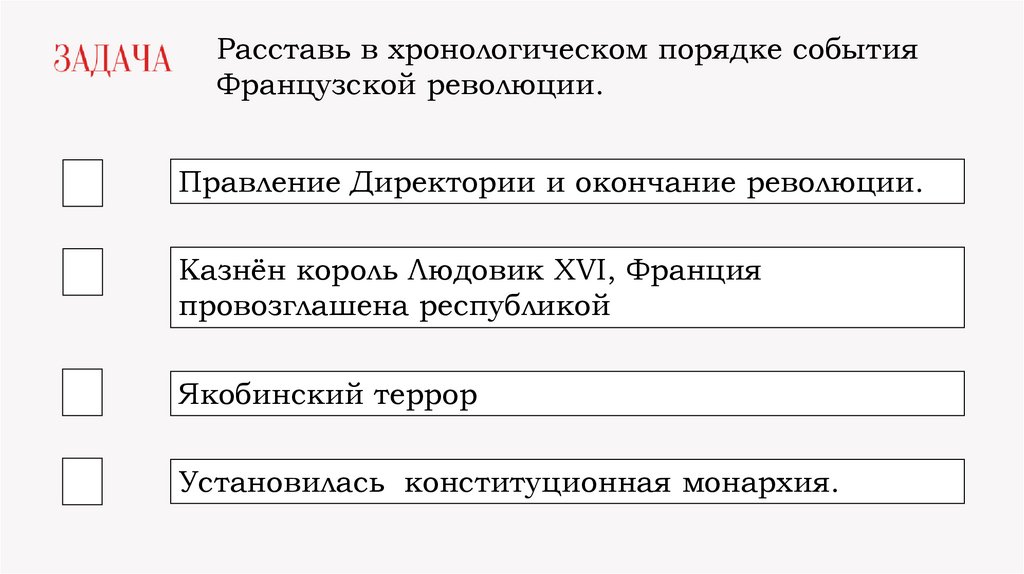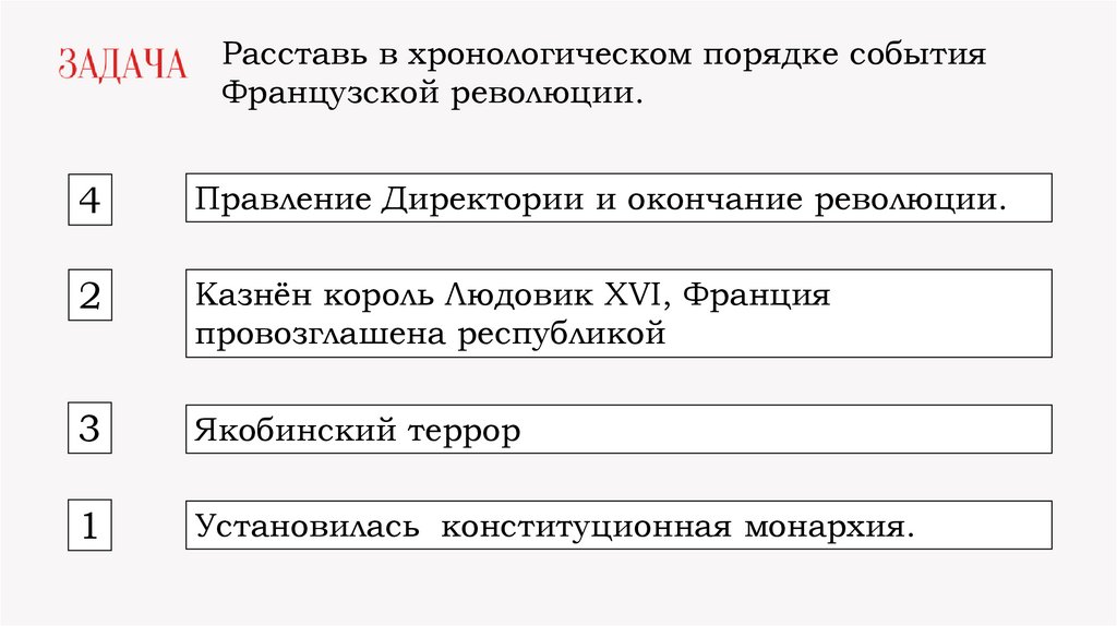 Расставь в хронологическом порядке событияФранцузской революции.