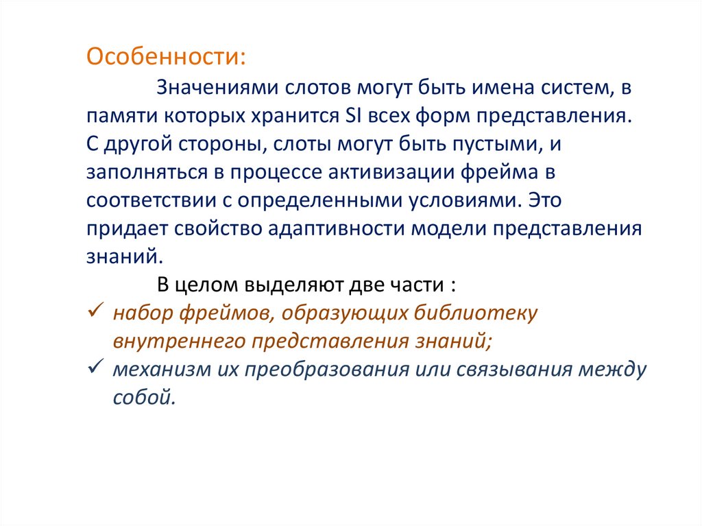 могут быть системными (служебными). Например, слот IS-A