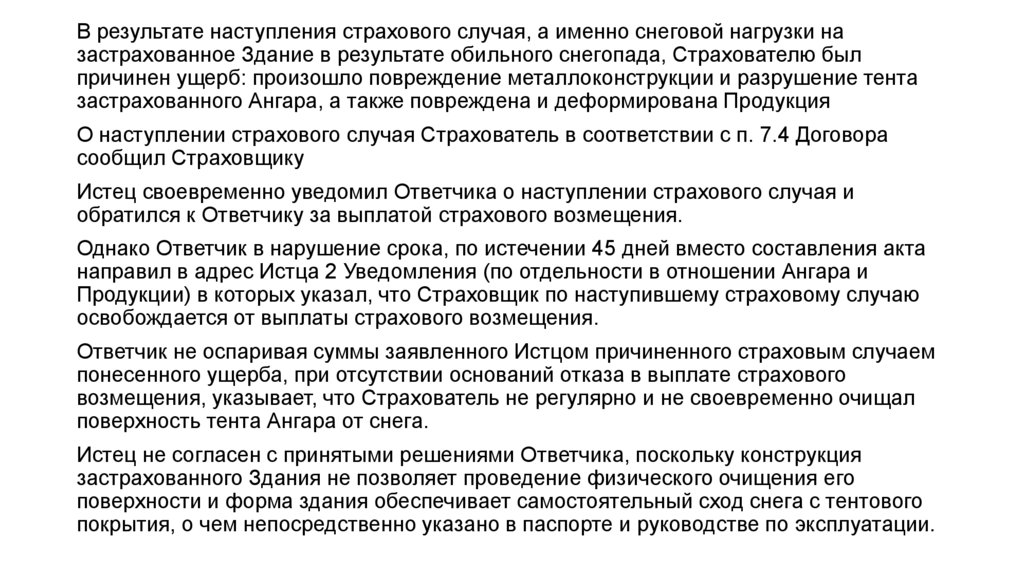 В результате наступления страхового случая, а именно снеговой нагрузки назастрахованное Здание в результате обильного снегопада, Страхователю был