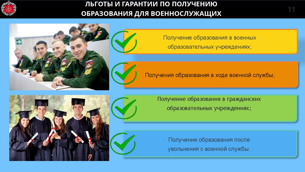 ЛЬГОТЫ И ГАРАНТИИ ПО ПОЛУЧЕНИЮОБРАЗОВАНИЯ ДЛЯ ВОЕННОСЛУЖАЩИХ
