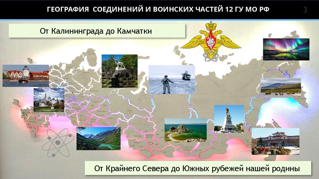 ГЕОГРАФИЯ СОЕДИНЕНИЙ И ВОИНСКИХ ЧАСТЕЙ 12 ГУ МО РФОт Калининграда до Камчатки
